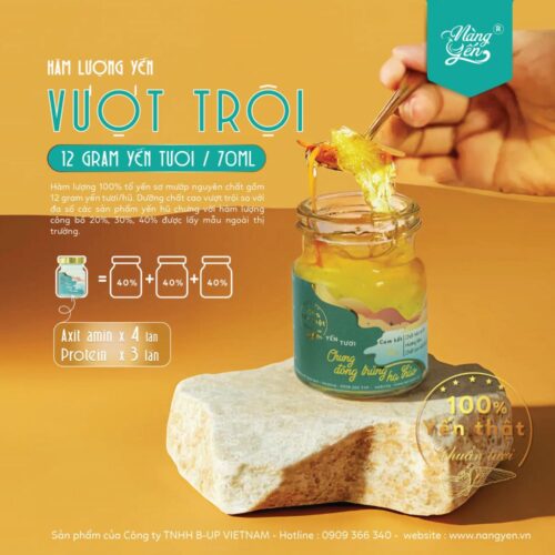 Chúng tôi đã tiến hành phân tích hàm lượng yến tươi của sản phẩm của chúng tôi và các sản phẩm yến khác trên thị trường, với hàm lượng công bố thường là 40%. Kết quả là đáng kinh ngạc: sản phẩm của chúng tôi có hàm lượng protein cao hơn hơn 3 lần và axit amin cao hơn gấp 4 lần so với các sản phẩm yến trên thị trường.