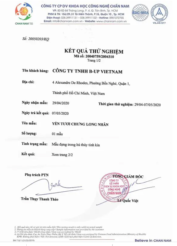 - Chúng tôi cũng đã kiểm tra hàm lượng chất và vi sinh trong từng hũ yến trước khi lưu thông trên thị trường.